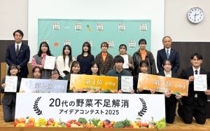 カゴメ(本社:愛知県名古屋市、社長:山口聡、)は、日本人の野菜摂取量が不足していることの理解を深め、野菜の重要性を訴求するための「野菜をとろうキャンペーン」の一環として、趣旨に賛同する企業・団体とともに「野菜摂取推進プロジェクト」を行なっているが、今年度は、特に野菜摂取が大きな課題となっている若年層に向け、野菜摂取の意識を高めてもらうため、4月から11月にかけて、全国の学生(大学・大学院・高等専門学校・専門学校)を対象とした「20代の野菜不足解消アイデアコンテスト」を実施した。コンテストには、全国から169件の応募が集まり、11月18日には一次審査を通過した5チームが参加し、最終審査会を実施しました。審査では、各チームがプロジェクトに加盟する企業・団体の関係者の前でプレゼンを行い、投票の結果、青山学院大学のチーム「NEXVEGE」による、「"モテ指標″等の可視化で理想の自分に近づく野菜摂取を促進するアプリ」の提案が1位を受賞。審査を務めたプロジェクトの参画企業の担当者からは、「若者の率直な声を聞いて、大変参考になった」、「20代の人は未来の健康への投資意識が低いという事を生の声として教えてもらった」という感想の声が上がった。