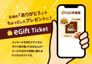 壱番屋(本社:愛知県一宮市、代表取締役社長:葛原守)は、12月9日より、eギフトサービス「壱番屋eGift」を開始。同社が運営する「壱番屋eGiftサイト」にて店舗で利用可能なデジタルチケットの販売を開始した。同サービスは、「壱番屋eギフトチケット500円」または「壱番屋eギフトチケット1,000円」にメッセージを添えて、メールやSNSを通じて気軽に贈ることができるデジタルギフト。eギフトチケットは、全国のカレーハウスCoCo壱番屋、および東海エリアで展開するあんかけスパゲッティ パスタ・デ・ココで利用が可能。また同日より、ギフティ(本社:東京都品川区、代表取締役:太田 睦、鈴木 達哉)が運営するWEBサービスおよびスマートフォン向けアプリ「giftee®」、デジタルギフトを活用した法人および自治体向けサービス「giftee for Business」でも、「壱番屋eギフトチケット」の提供を開始。個人での利用のほか、法人・自治体の各種キャンペーンやアンケートの謝礼など、さまざまな用途での活用もできる。販売サイト:「壱番屋eGiftサイト」https://ichibanya.egift-store.com/、「giftee®︎」https://giftee.com/items/6398、「giftee for Business」https://x.gd/21C05