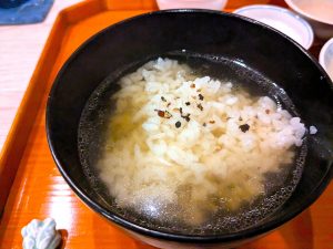 十品の料理が配膳され、そのうち汁物はお椀二、ねぎま、茶漬けの四品でした。