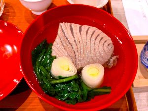 十品の料理が配膳され、そのうち汁物はお椀二、ねぎま、茶漬けの四品でした。