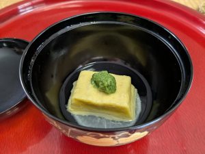 十一品が配膳され、そのうち汁物は茶碗蒸し、箸洗い、粟麩と、最初のお薄と、